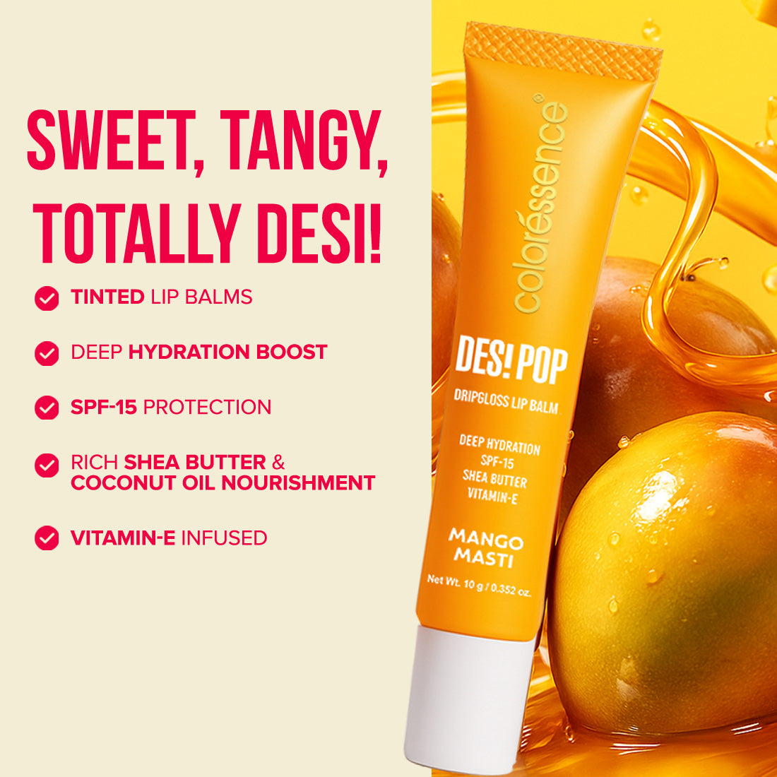 Meet the Desi Pop DripGloss Lip Balms, your new solution for hydrated, glossy, protected lips that stay soft for hours. Infused with Vitamin E, Shea Butter, Coconut Oil, and SPF 15, this balm goes beyond shine — it fixes the root problem by deeply nourishing and protecting your lips from sun damage and dryness.