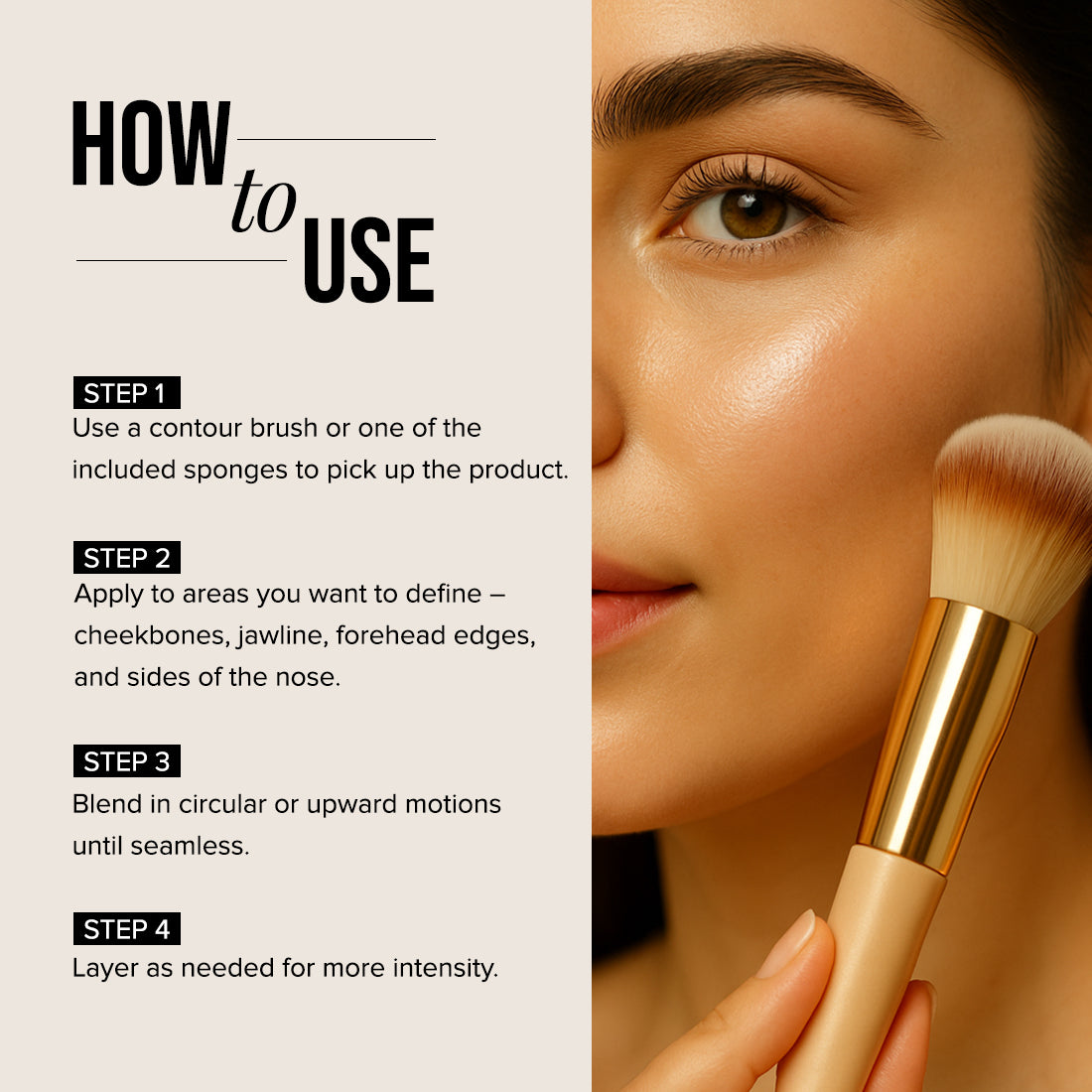- Multi-Use – For contouring, bronzing & jawline definition