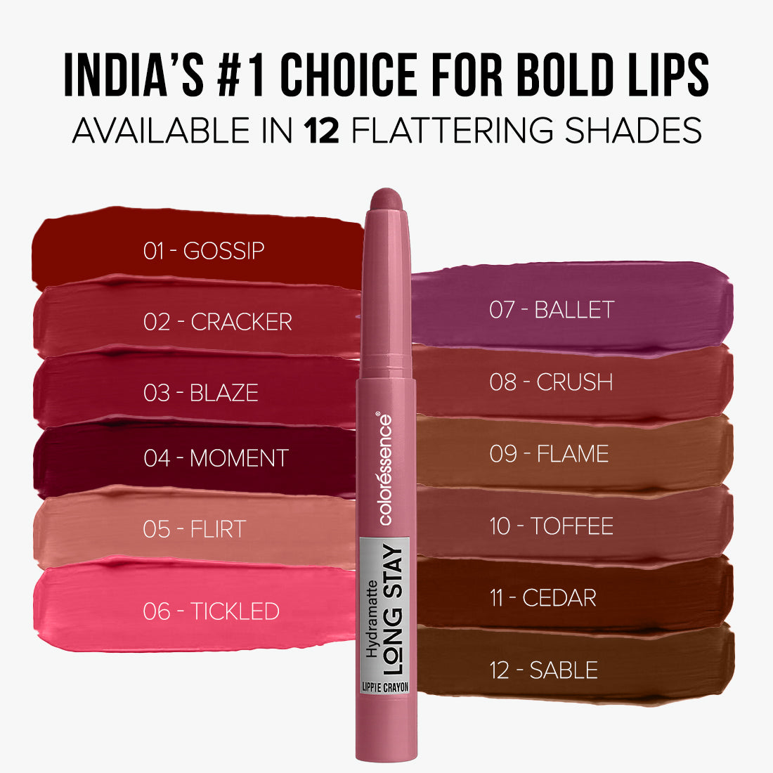 Meet the crayon that gives you the best of both worlds – bold matte color that feels like hydration. The Coloressence Hydramatte Long Stay Lippie Crayon glides on effortlessly, delivering rich pigment in just one stroke.