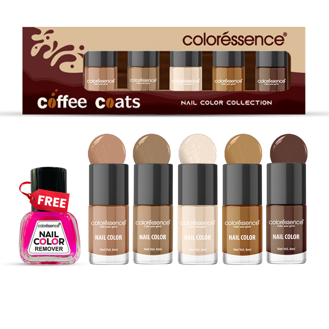 Nail Paint Kit ( 6ml each ) + FREE nail Color Remover ( 10 ml )