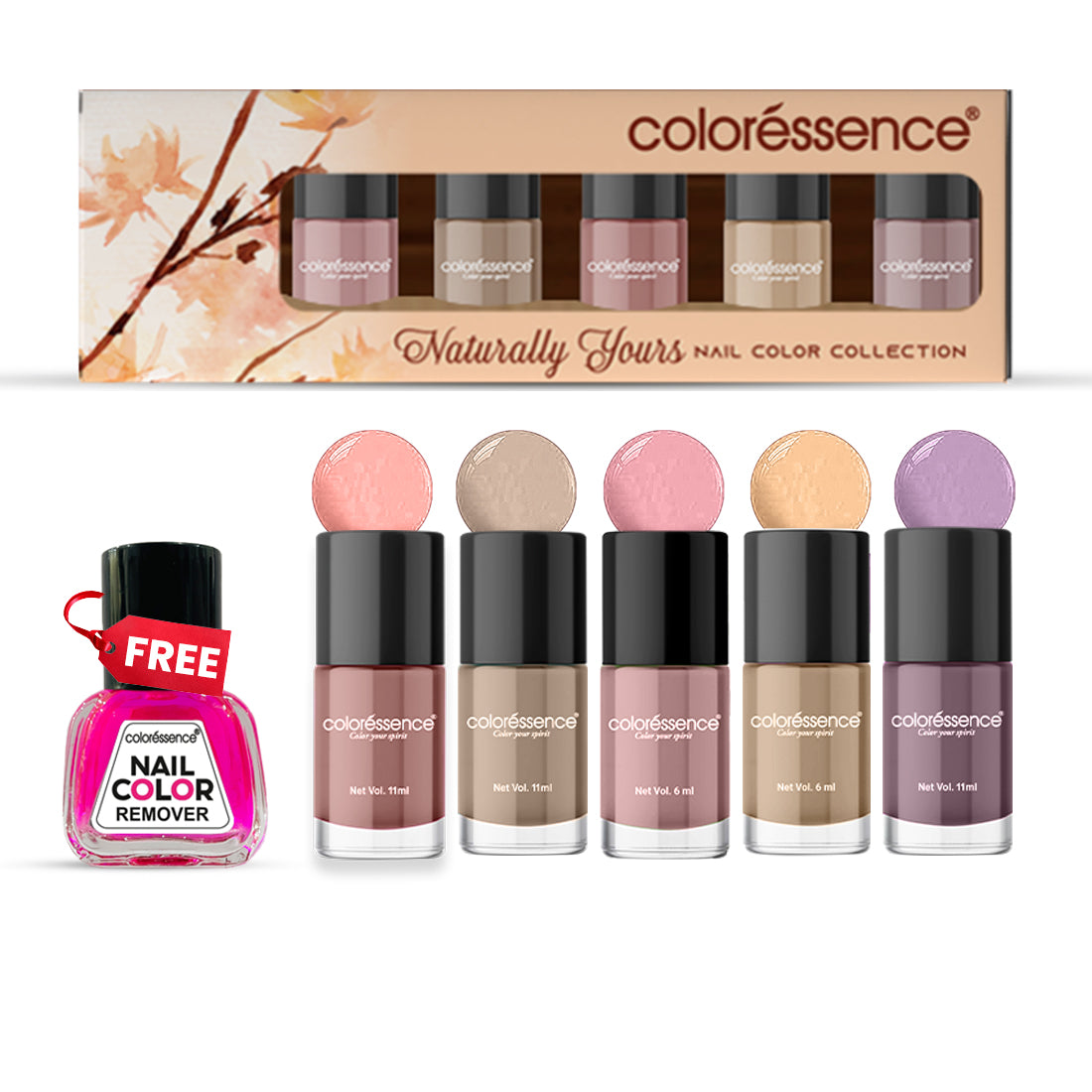 Get salon-worthy nails at home with the Coloressence Nail Paint Kit, featuring 5 gorgeous shades for every mood and occasion. Each high-shine polish delivers vivid color in just two easy coats, dries quickly, and resists chips to keep your mani looking fresh. Compact, easy to use, and fun to mix, this kit is perfect for gifting or personal use.