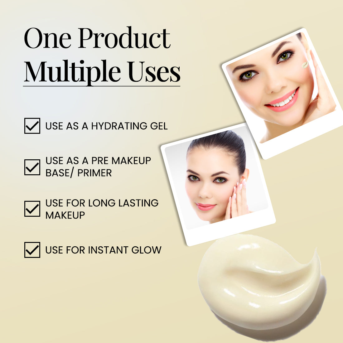 Use it as a quick glow-cream on no-makeup days skin still looks fresh and smooth. Double use vibe hai!