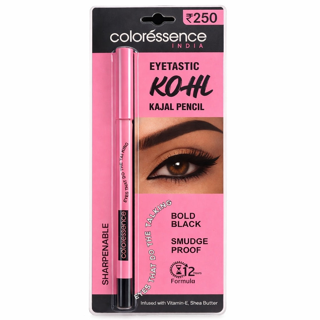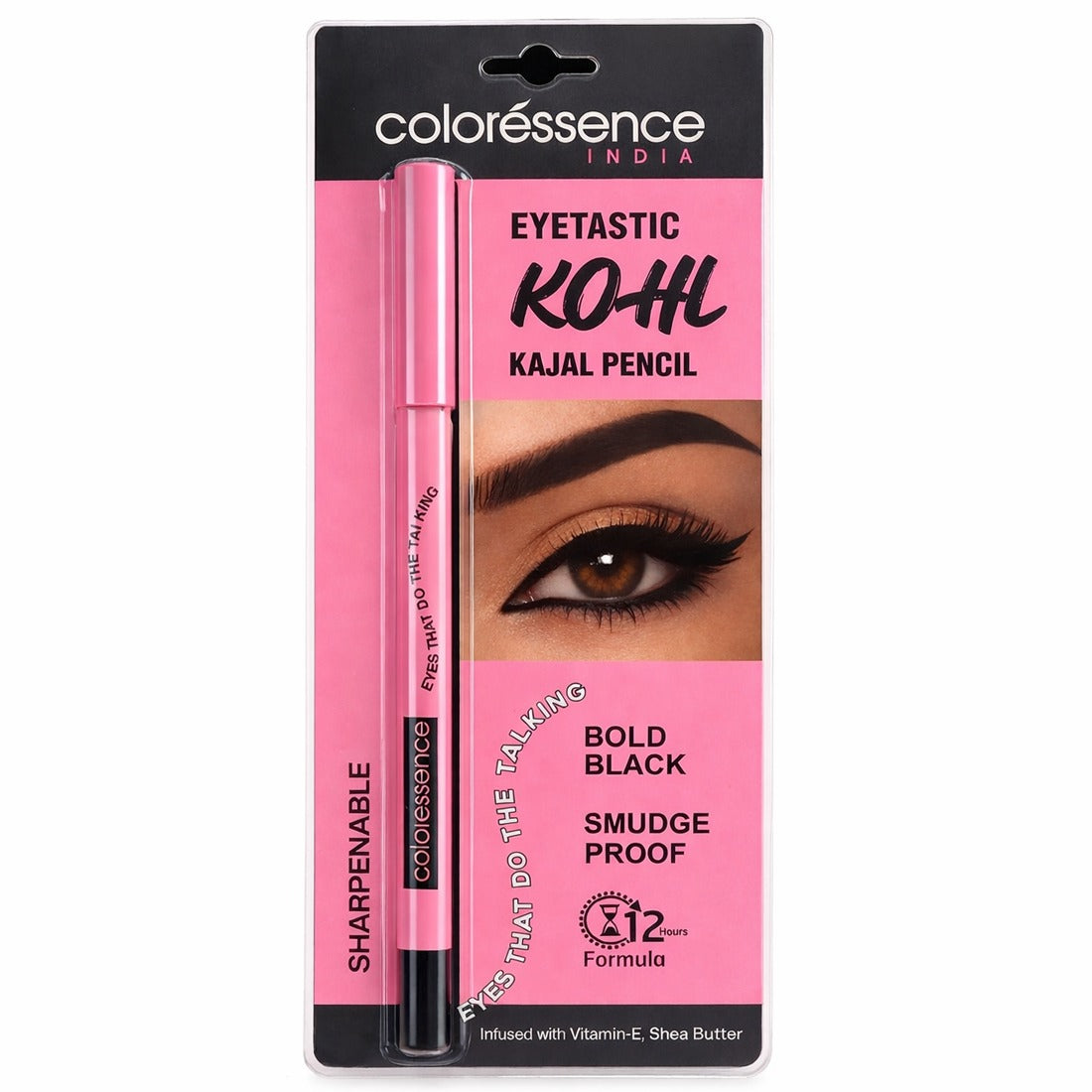 Coloressence Eyetastic Kohl Kajal Pencil delivers intense bold black colour with a smooth creamy glide that feels effortless on the eyes. Its smudge proof long lasting formula stays put through the day while Shea Butter ensures tug free application and Vitamin E helps nourish delicate eye area. From subtle definition to dramatic smokey looks this kajal gives you bold expressive eyes without discomfort
