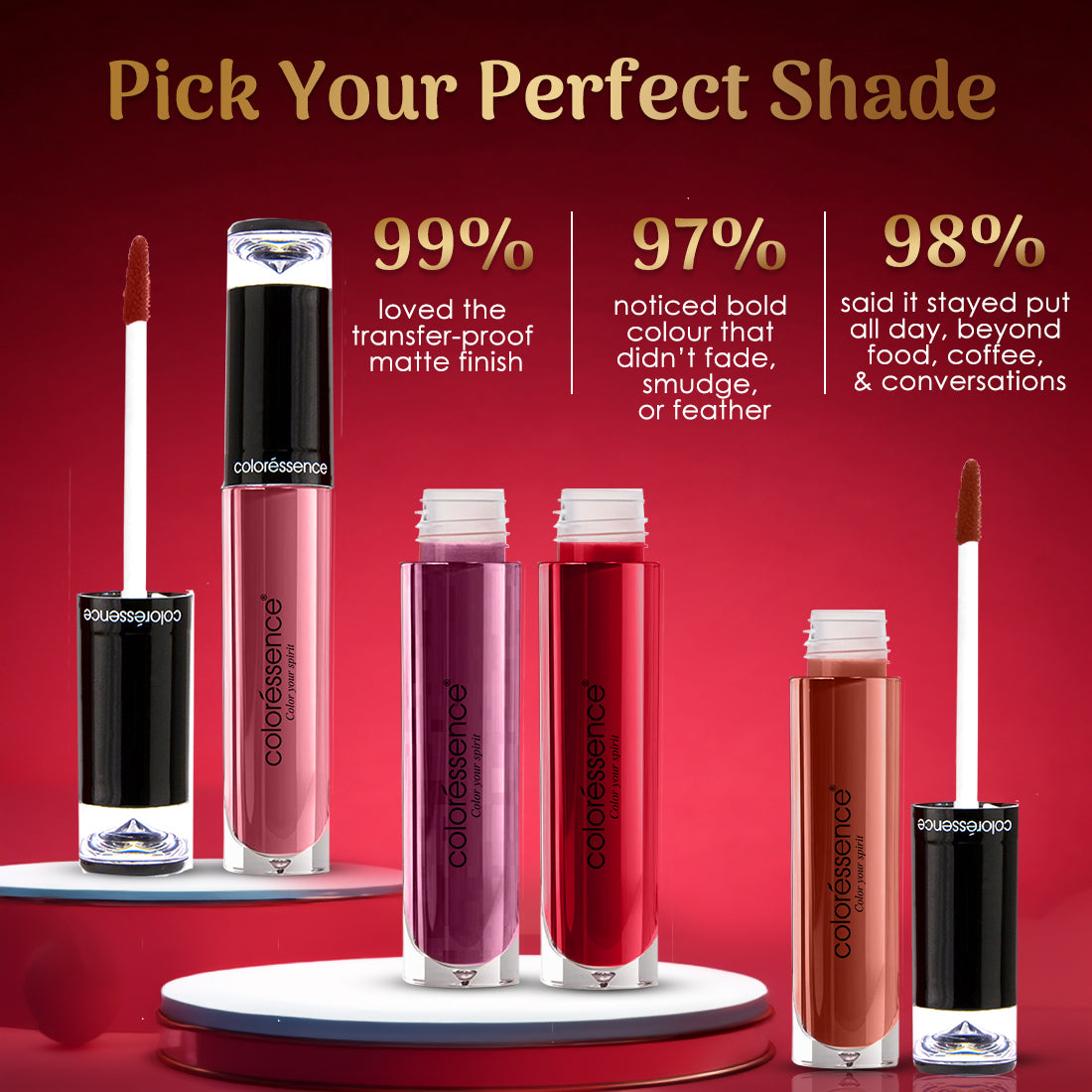 Stay bold, stay flawless with the Coloressence Lipstay Liquid Lipstick — a long-lasting, transfer-resistant formula designed for intense color payoff and all-day comfort. With a creamy texture that settles into a smooth matte finish, this liquid lipstick delivers full coverage in one swipe and doesn’t budge, even through meals.